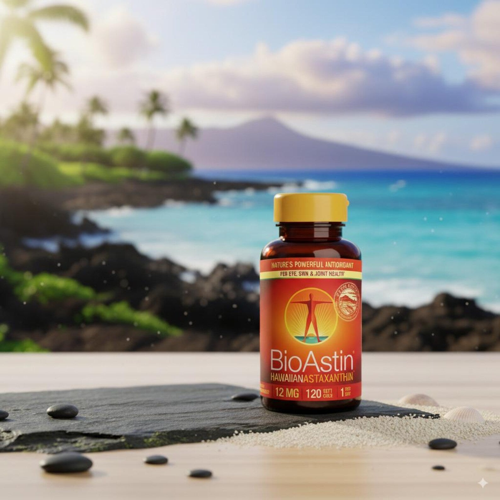 Astin Hawaiian Astaxanthin 12 mg (120 softgels) is a dietary antioxidant supplement made from natural astaxanthin derived from microalgae grown in Hawaii.